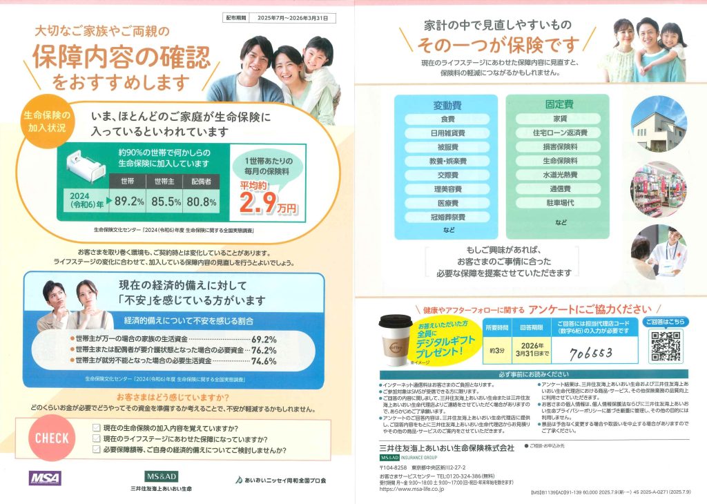 2026年3月31日まで三井住友海上あいおい生命では、保障内容に関するアンケートを行っております。ぜひご協力ください。